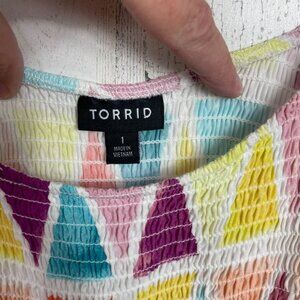 Torrid tank top boho triangle print smocking size 1 plus size 1X flowy festival