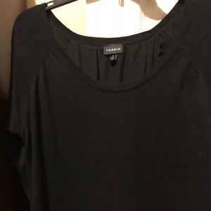 Beautiful Torrid top/ sweater with a see through bottom back piece. Please see Picts. Wore once and great condition. Make me an offer