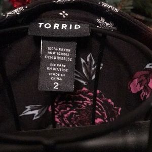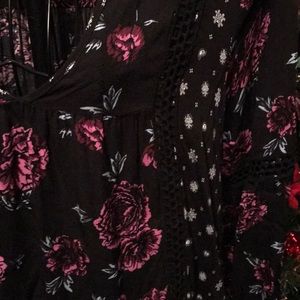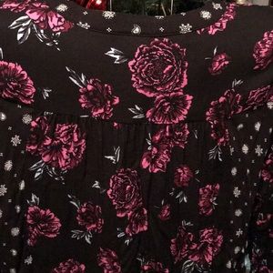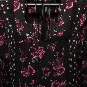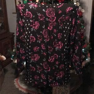 Long sleeves top black with pink floral and white design. Has crochet trim. Very good like new condition