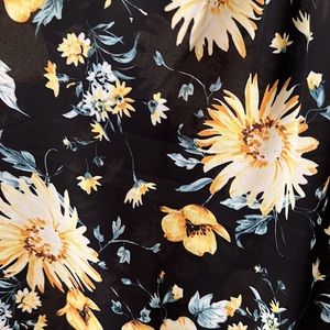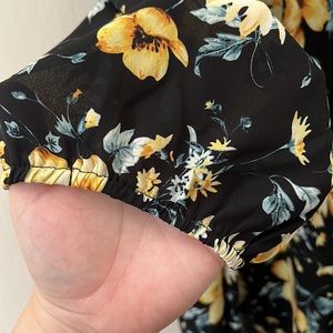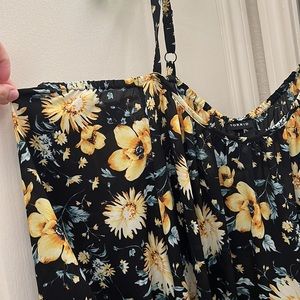 Black spaghetti strap cold shoulder top with yellow flowers and blue leafs. The end of the sleeve has elastic. Straps are adjustable. NWT. SIZE 3. Same as 22/24