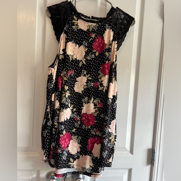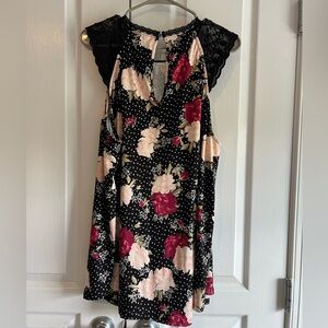 Torrid black top, small white polka dots and flowers Keyhole back Lace is soft