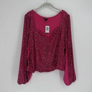 Torrid top womens 4x pink sequin shirt deep v party going out plus size colorful
