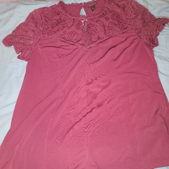 1X Torrid Top Lace across chest and sleeves Worn once maybe twice Maroon color E