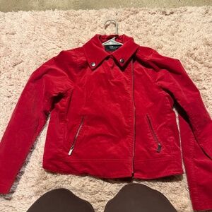 Beautiful red jacket! I’ve never worn it but I really had wanted it. I thought it was cropped but it’s not.
