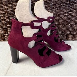 Torrid wine merlot Office Siren vegan suede strappy birdcage dress sandals. 9W