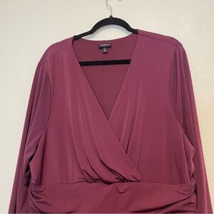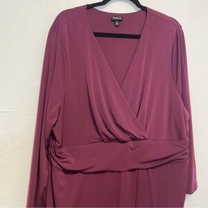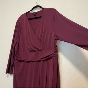 Torrid womans burgundy Dress size 3 midi long sleeve faux wrap vneck formal wear