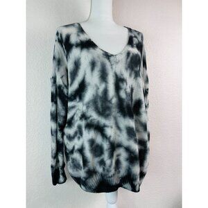 Torrid women's 1 1X black and white tie dye long sleeve v-neck sweater top