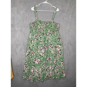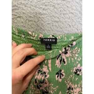 Torrid womens 3X green floral sun dress lined ruffle smocked midi lightweight