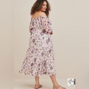 Torrid women’s 6x off shoulder puff sleeve tiered maxi dress floral mesh boho