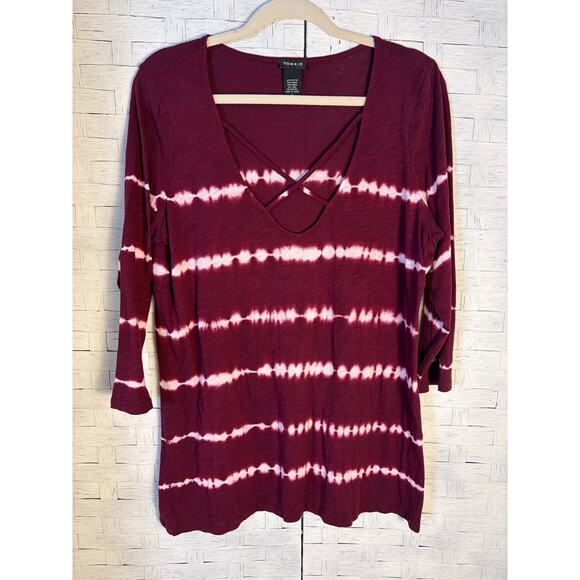 Torrid women’s V-neck long sleeve T-shirt tie-dye burgundy casual plus size