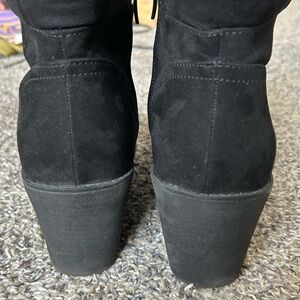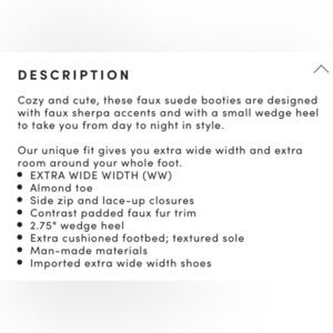 Torrid micro fiber upper with faux fur accent 3” wedge heels boots. Lace up in the front but zip up on the inside for easy off and on.