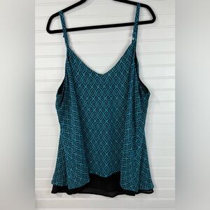 Torrid women’s turquoise & black strappy, flowy geometric pattern tank. Size 3X