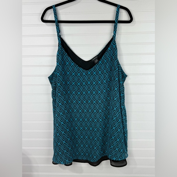 Torrid women’s turquoise & black strappy, flowy geometric pattern tank. Size 3X