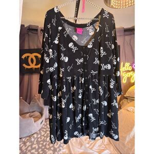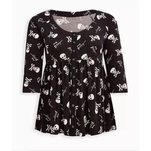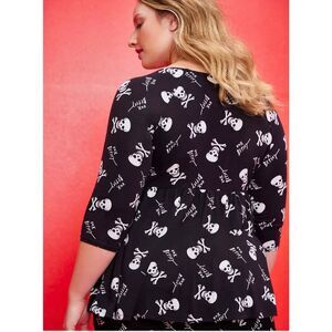 Torrid x betsey johnson size 3 retro skull babydoll top/shirt/blouse pinup skull