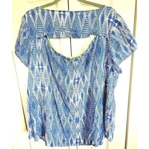 Torrid 2 Peek A Boo Back Top Size 2X Colorful Tropical Flutter Sleeves Faux Pocket.