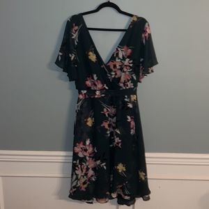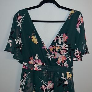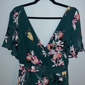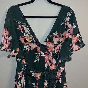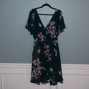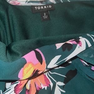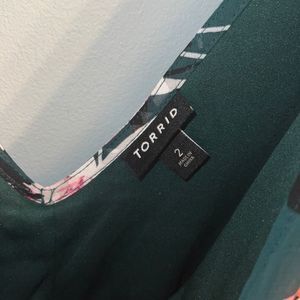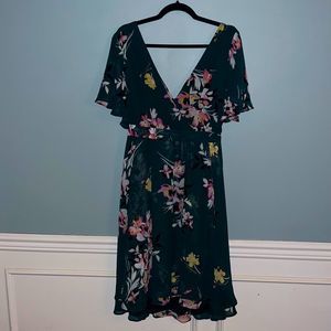 Torrid 2X Hunter green floral New faux wrap dress midi length