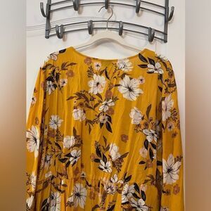Torrid Babydoll Gauze Yellow Floral Crochet Trim Lace-Up Top Size 2X EUC