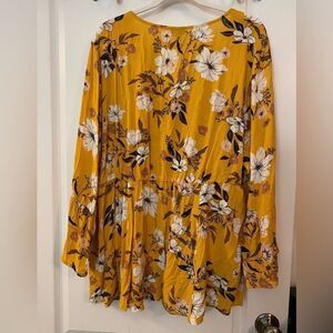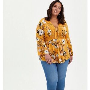 Torrid yellow floral Gauze Crochet Trim lace up top