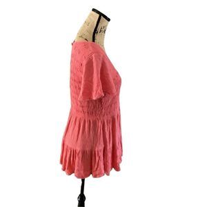 Size Large 16” armpit to armpit 28” long Color: Coral Orange Self: 100% Rayon Elastic: 75% Polyester 25% Spandex