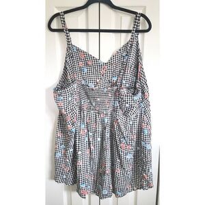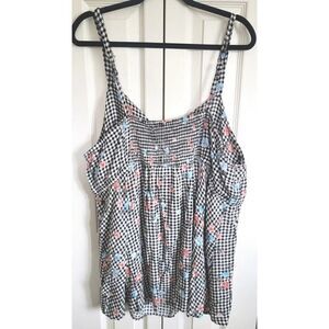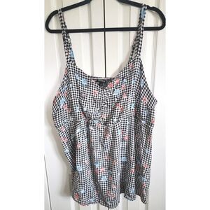 Torrid Black & White Gingham Checkered and Floral Print Tank Top Size 4.