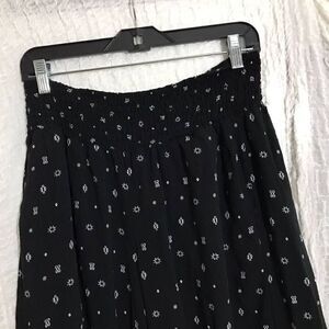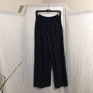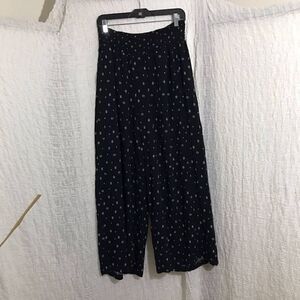 Black palazzo dressy pants with white abstract print design. Stretchy waist. Pre-owned in good condition. Please refer to pictures for best description and condition verification.