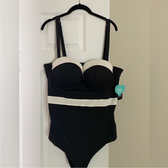 Torrid Black & White Textured Push Up Bra One Piece Swimsuit Size 2