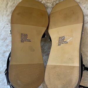 Torrid Black synthetic leather gladiator sandals silver tone studs accents SZ9WW .pre owned in good used condition signs of wear on the outer soles no noticeable peeling.see all pictures any questions please message.