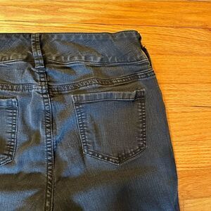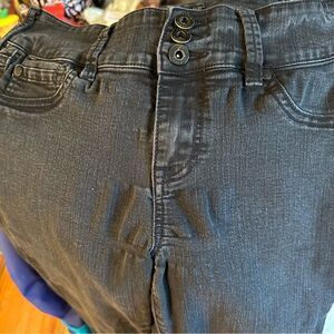 So super comfy & stretchy torrid denim, jeans, size 10 regular. They are in good shape and have three buttons at the waist and then a short zipper. The only issue is the person who owned them before stretched them out at the hip and abdomen area.