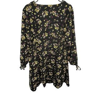 Torrid Floral Print Long Sleeve Dress With Stretchy Waist and Ties On The Sleeves