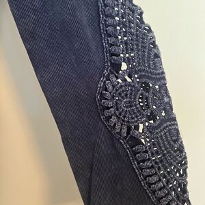 Long sleeved blouse with knit areas on arms. Stone washed in color size 1 by Torrid.