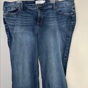 These blue straight leg jeans from Torrid offer a classic look with subtle whiskering and a medium wash. Crafted from traditional denim, they provide a comfortable fit with a hint of stretch, making them perfect for everyday wear.