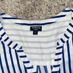 Torrid Blue White Striped Harper Sleeveless Blouse 4X