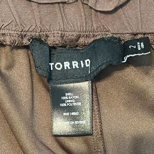 These shorts are made by Torrid. They are a brown mid rise paper bag waist style. Originally they came with a tie, but I no longer have that. Torrid size 2 (2XL) and in very nice pre owned condition. Smoke and pet free home.