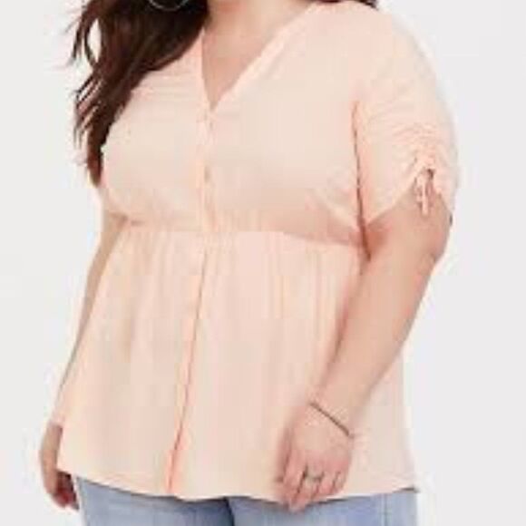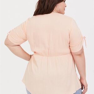 Torrid Challis Tie Sleeve Babydoll Top Peach Asymmetrical Hemline 1 1X