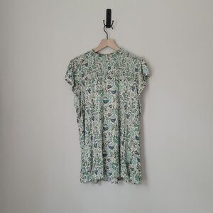 Torrid Cotton Modal Jersey Smocked Mock Neck Top in Blue & Green Size 2
