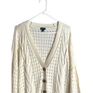 Torrid Cream Pointelle Open Knit Cable Button Front Cardigan Sweater Size 3 (3X)