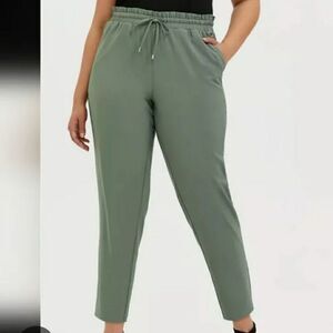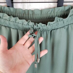 ~ Description: Green crepe material taper legged pants, elastic waistband with drawstring, 2 pockets