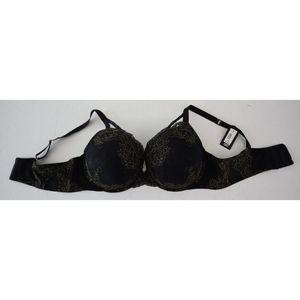 Torrid Curve Sz 44D Black/Gold Lace Push-Up Plunge Padded Under Wired Bra
