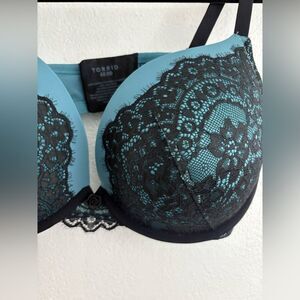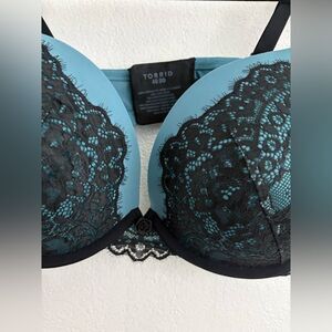 Torrid Eyelash Lace Push-up Plunge blue and black Bra size 40DD