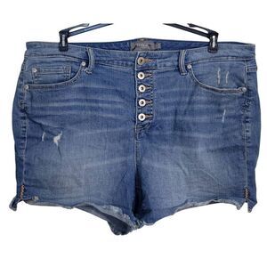 Torrid Feel the Fit Size 18 Distressed Denim Button Up Shorte
