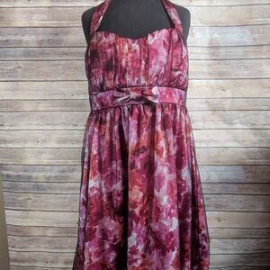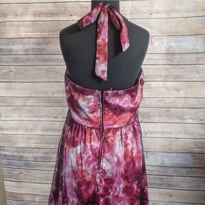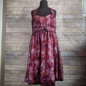 Gorgeous floral dress with tie back halter neck. Zipper back. 36" bust 29" length Polyester dress and fully lined A287