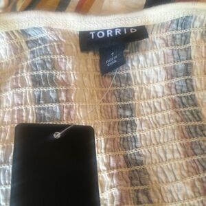 Torrid Fun Stripe Halter Smock Cream/Gold/Green top, size 1X (14/16)