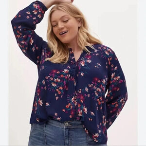 Torrid GEORGETTE PINTUCK BUTTON-FRONT BLOUSE 5X