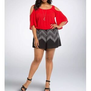 TAGS: TORRID PLUS SIZE ROMANTIC DATE NIGHT SUMMER TOP FLOWY BEACHY TOP BEAUTIFUL GIRLS NIGHT OUT SHOULDER CUT OUT SHOULDERLESS COLD SHOULDER GEORGETTE BREATHABLE LIGHTWEIGHT SEXY RED HOT CUTOUT BLOUSE HI LOW TOP V NECK BABYDOLL TUNIC CHRISTMAS XMAS