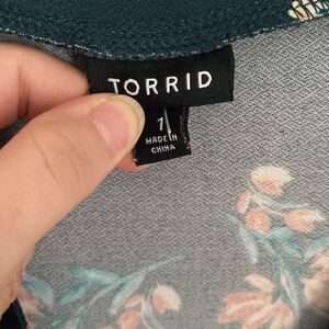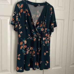 Torrid Green Floral Wrap Front V Neck Blouse Short Sleeve Size 1 MISSING TIE