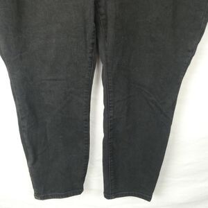 Machine washable cotton/rayon/polyester/spandex. Black jeans, either straight or skinny leg I think(I'm not an expert, please see photos and measurements). Size 18S.