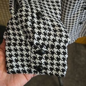 Torrid size 1 Madison black & white Houndstooth Georgette long sleeve blouse. Double pockets, covered buttons, faux leather collar, 100% polyester. No rips, stains, or snags.
