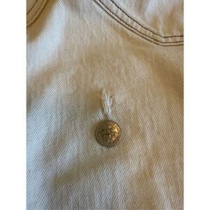 Cute wide leg cropped pants with brown accent stitching. These had been taken in at the waist, so there is some minor damage from removing the stitches. Also a bit of distressing on rear. Otherwise, in very good condition.