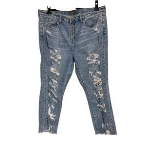 Torrid Jeans Womens 18R Blue Denim Straight Distressed Feel The Fit Button Fly