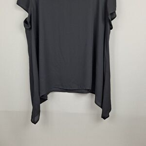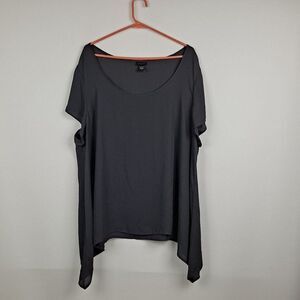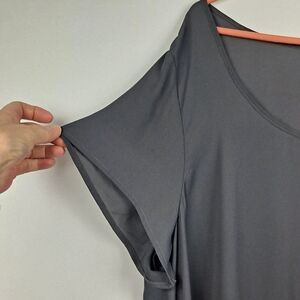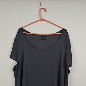 Deep gray, size 3. Pullover, scoop neck, short sleeves. Semi Sheer fabric. Measures 27" pit to pit, length is 31".